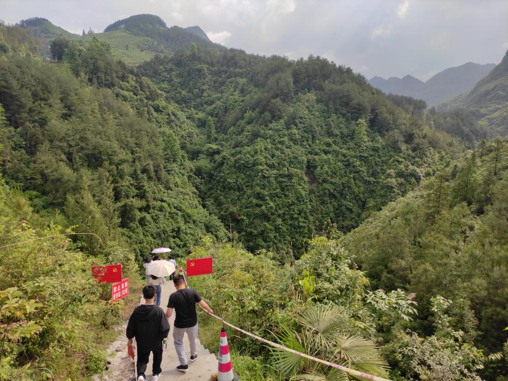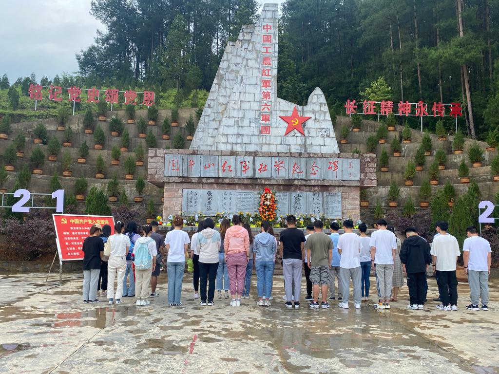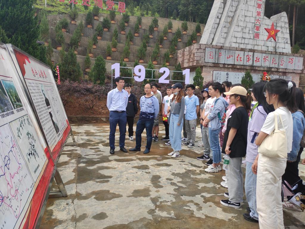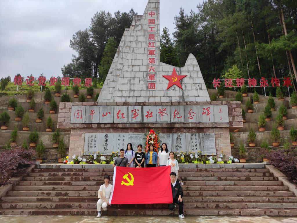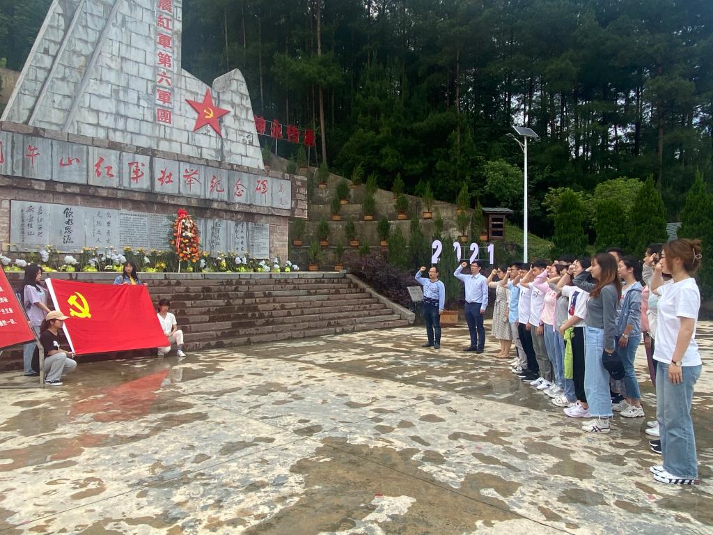 签约仪式结束后,研究生党支部一行来到困牛山战斗遗址。公司经理伍权为支部党员介绍了红军从甘溪战役到困牛山战斗的历史,公司党委副书记(驻村第一书记)杨光复重点讲述了困牛山战斗中百余红军英勇跳崖的故事。全体人员参观了困牛山红军壮举纪念碑和红军战士跳崖遗址,学习到了少年红军参加革命的故事,体会到了百壮士以身换生机的壮举。带着对烈士的敬仰,在纪念碑面前,支部全体党员默哀三分钟,缅怀所有在斗争中奉献出宝贵生命的革命先烈们。