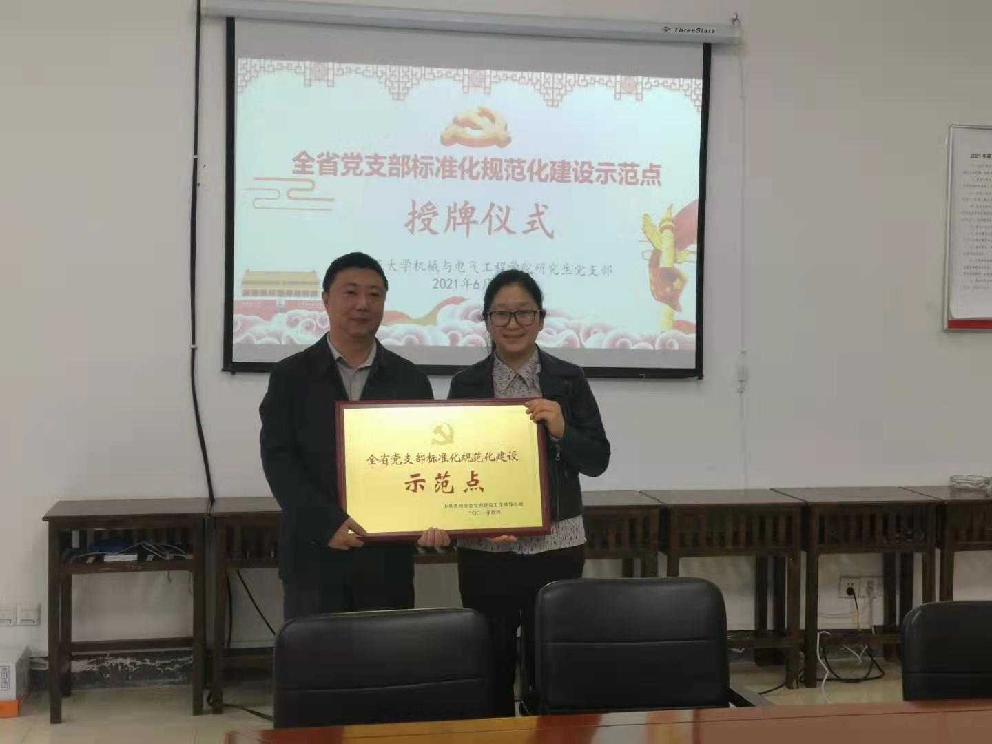 授牌仪式上,高峰同志宣读了《中共贵州省委党的建设工作领导小组关于命名“全省党支部标准化规范化建设示范点”的通知》,并为获命名的qm球盟会网站研究生党支部授牌。