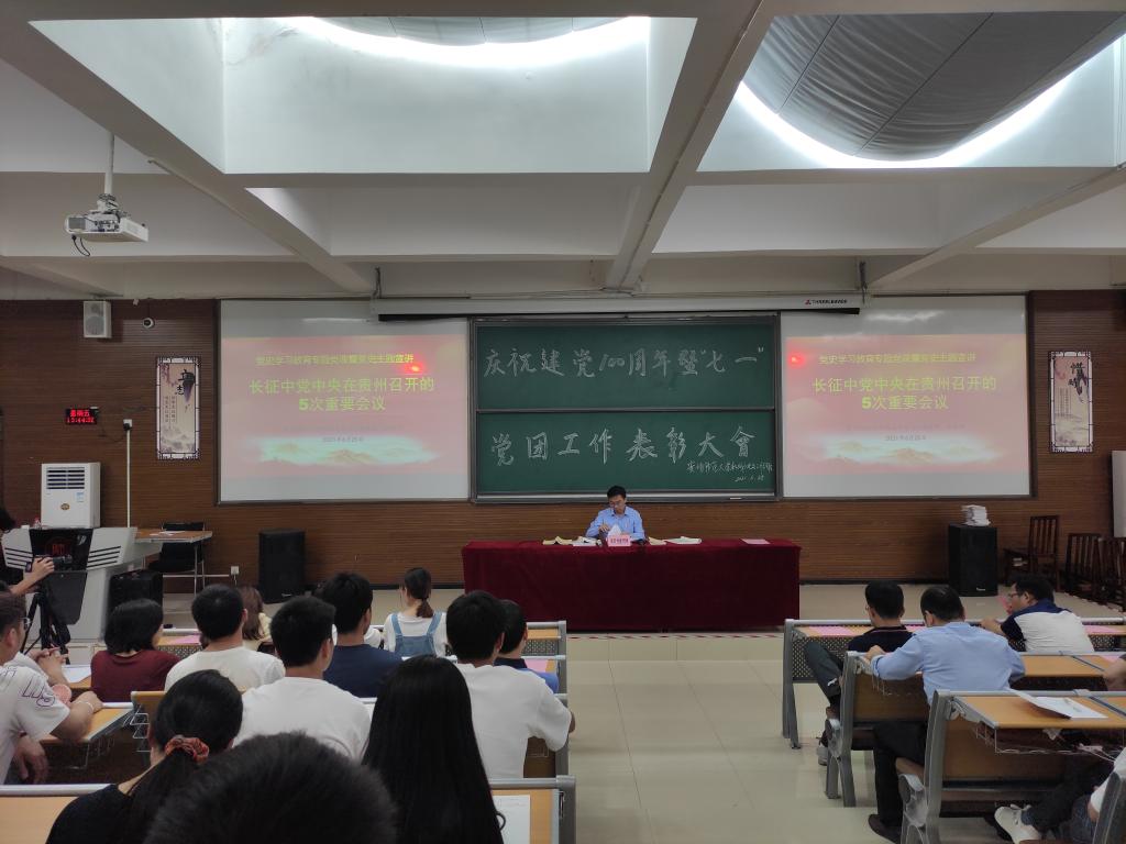 表彰仪式结束后,公司党委书记郑继明为公司全体师生党员上了题为《长征中党中央在贵州召开的5次重要会议》的党史学习教育专题党课,分别从黎平会议、猴场会议、遵义会议、鸡鸣三省会议、苟坝会议召开的背景和过程追寻红军在贵州的长征足迹。他强调,贵州是中央红军在长征途中活动时间最长、活动区域范围最广、发生重大事件最多的省份之一,红军长征在贵州出台的一个个决议,让中国革命重新走上正确道路,留下了宝贵的精神财富。全体师生党员要传承好红色基因,在中国发展中弘扬红色精神,走好新时代长征路。