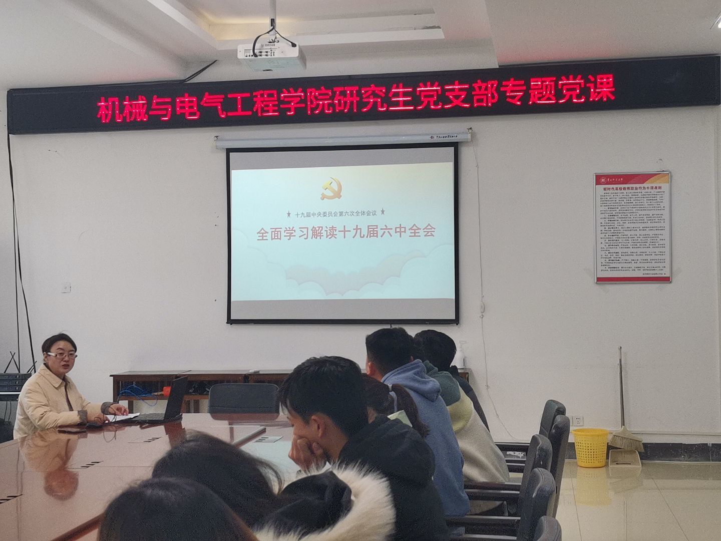 12月13日,公司党委委员、统战部部长姚作舟莅临qm球盟会网站,为研究生党支部全体党员现场讲授了一场十九届六中全会精神专题党课。