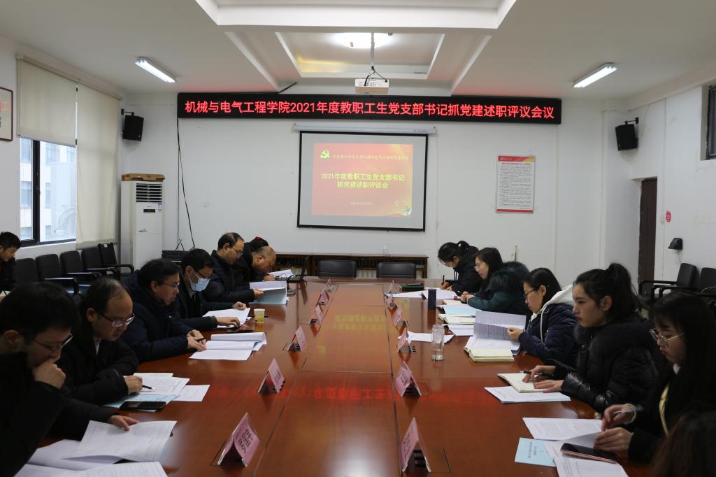 12月28日,机械与电气工程公司党委在公司楼8322会议室召开了2021年度教职工生党支部书记抓党建述职评议会,公司党委班子成员、教职工生党支部书记和支部委员、教师代表和员工代表共25人参加了此次会议,会议由公司党委副书记杨光复主持。