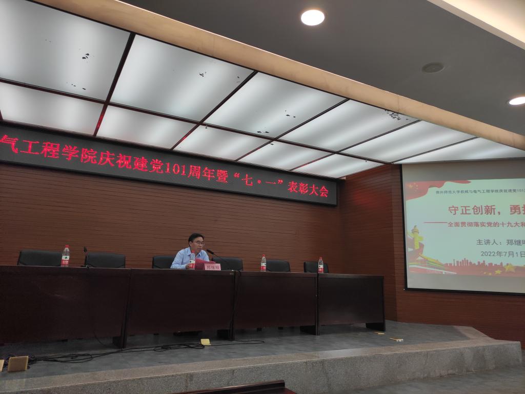 7月1日,qm球盟会网站在花溪校区会议中心二楼报告厅召开庆祝中国共产党成立101周年暨“七一”表彰大会。公司党委书记郑继明,党委副书记、经理伍权,党委副书记杨光复,副经理张太华,党委委员罗国宇、吴楠等出席会议,全体师生党员、团员和各员工组织员工干部代表等200余人参加会议。