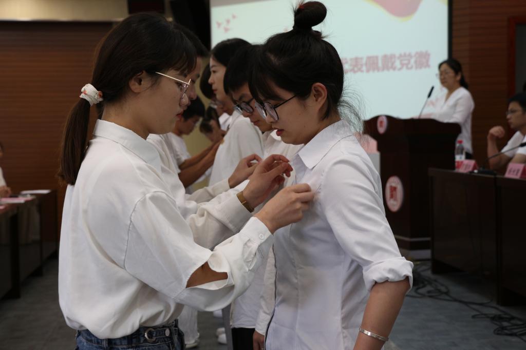 活动在庄严的国歌声中拉开序幕。现场,老党员为2022年新发展的党员佩戴了党徽,举行了新党员入党宣誓和老党员重温入党誓词仪式。“我志愿加入中国共产党,拥护党的纲领,遵守党的章程……”在火红的党旗下,全体党员右手举拳,庄严宣誓,铿锵有力的誓词久久回响在报告厅。宣誓仪式结束后,庄炜斌同志作为2022年新发展党员代表发言,发言中,他向党组织表了决心:一是要做好党的忠诚卫士,二是要在党面前做干净彻底的人,三是要做敢担当、善作为的新时代实干青年。