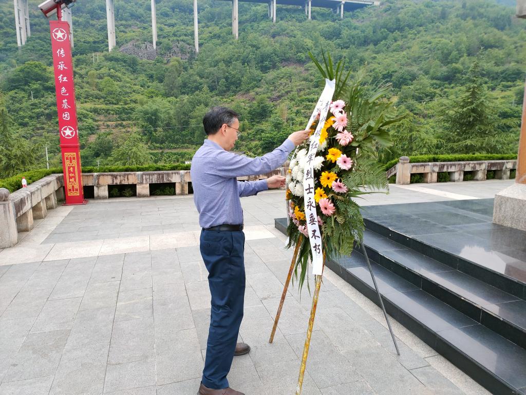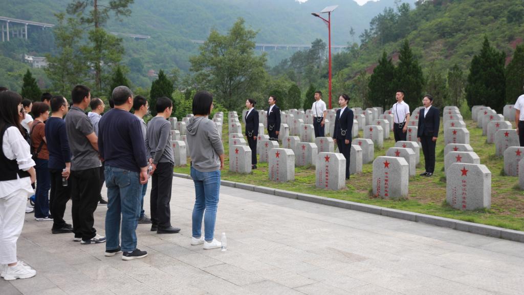 青山埋忠骨,史册载功勋。在青杠坡战斗遗址,公司党委向革命先烈敬献花篮,党委书记郑继明仔细整理花篮缎带。全体人员向长眠于此的革命先烈三鞠躬,随后,大家绕行纪念碑,向革命烈士表达了崇高的敬意。在纪念碑前,全体党员重温了入党誓词,认真聆听了讲解员讲述青杠坡战役。在镌刻着共产党人信仰的座座墓碑前,情景诗朗诵《祖国,只要您需要》和现场教学《用信仰丈量新时代的长征路》,讲述了青杠坡战役的壮烈和红军战士们的铁骨忠魂,让不少党员同志泪洒现场。
