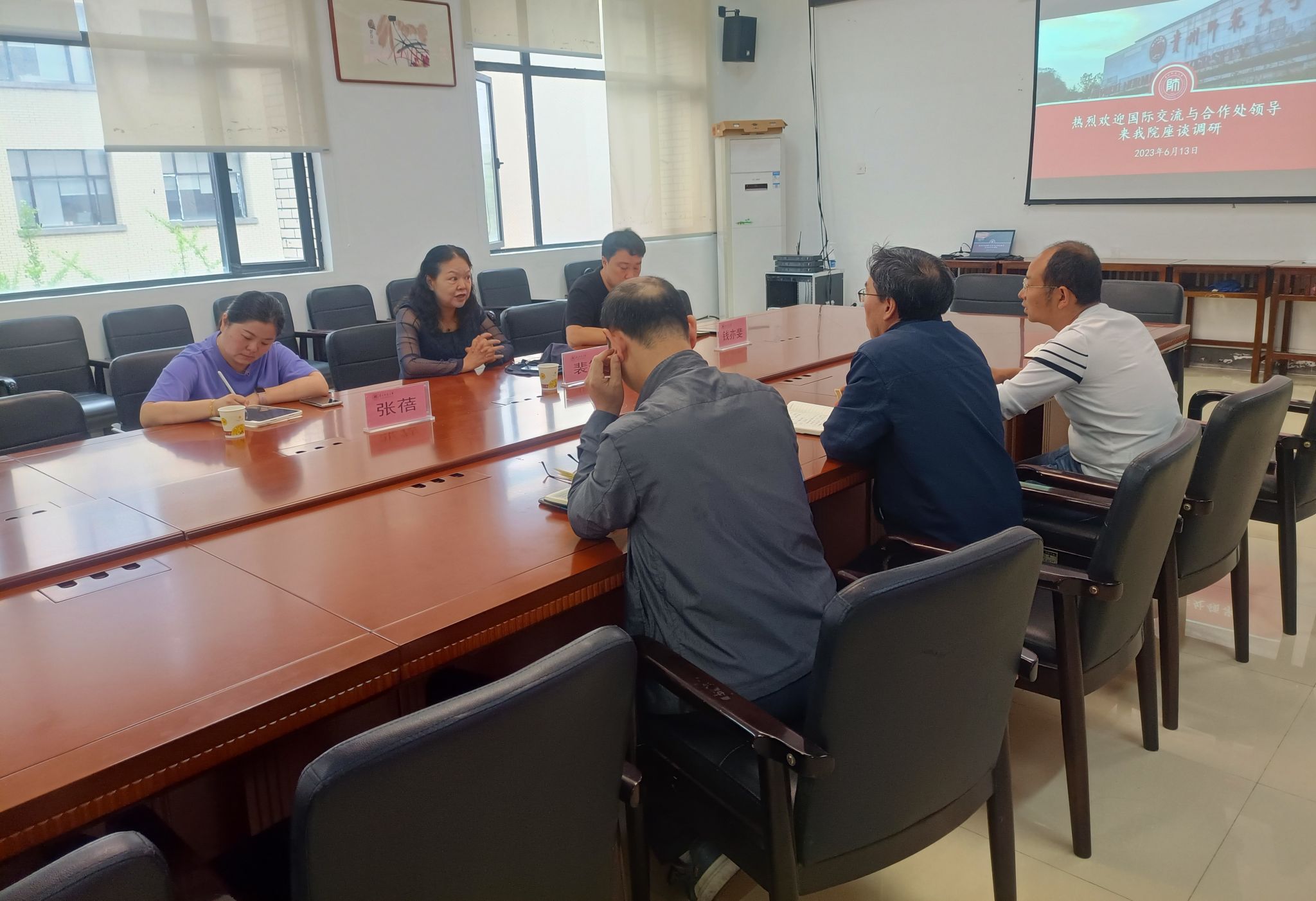 2023年6月13日,国际交流与合作处处长裴筠一行3人到公司针对国际化交流与合作相关事宜展开调研。公司党委书记郑继明、副经理张太华和副书记杨光复参加调研。