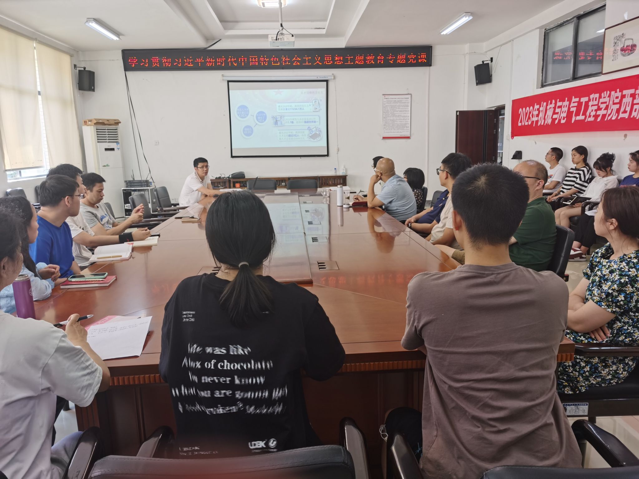 按照学习贯彻习近平新时代中国特色社会主义思想主题教育的相关要求,6月27日下午,公司党委副书记、经理伍权以“深入学习贯彻党的二十大精神 凝聚教育科技人才发展共识”为题,在公司会议室讲授学习贯彻习近平新时代中国特色社会主义思想主题教育专题党课。伍权经理联系指导的机械工程系党支部全体教师党员和全体研究生党员到场聆听。