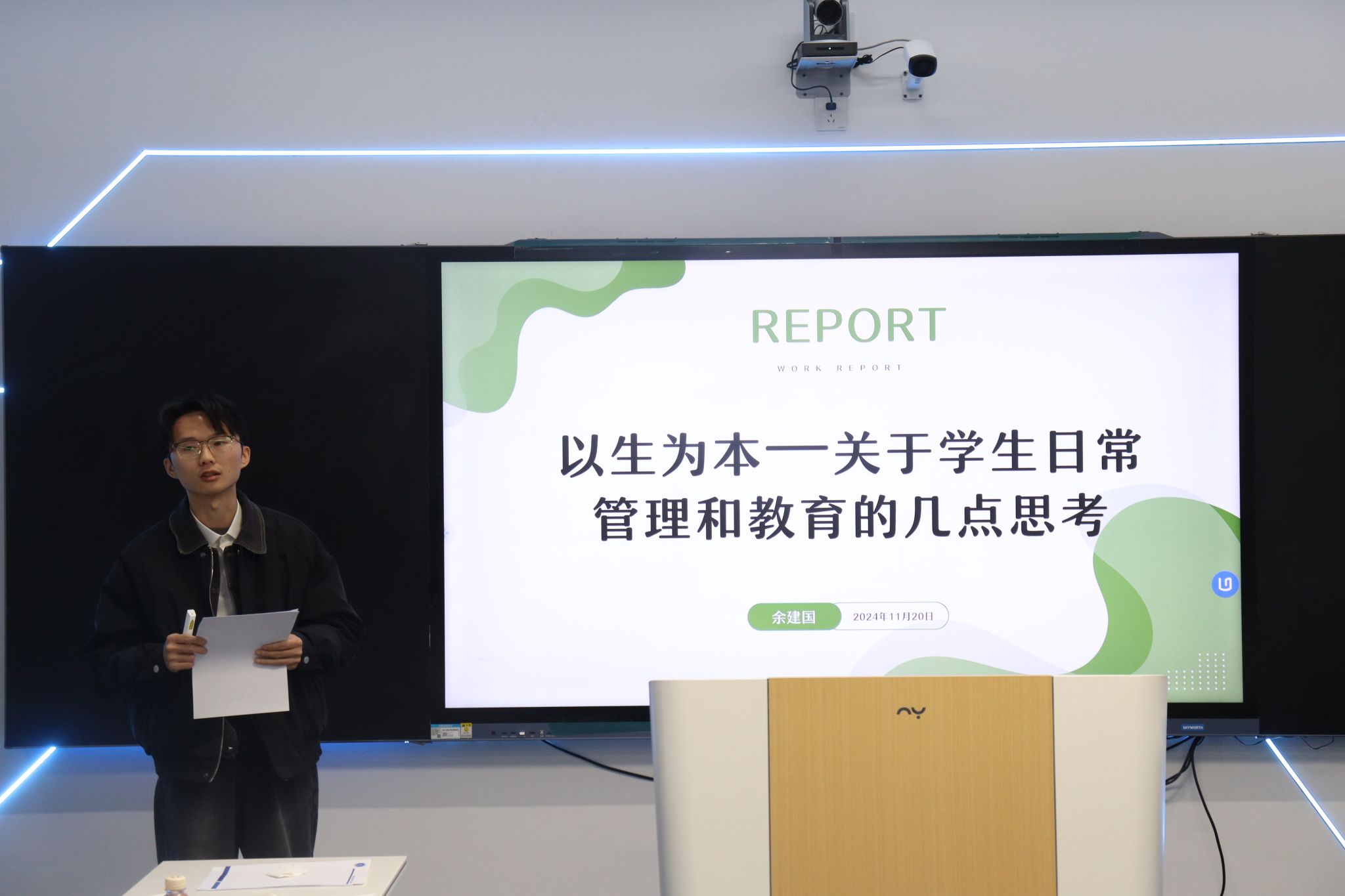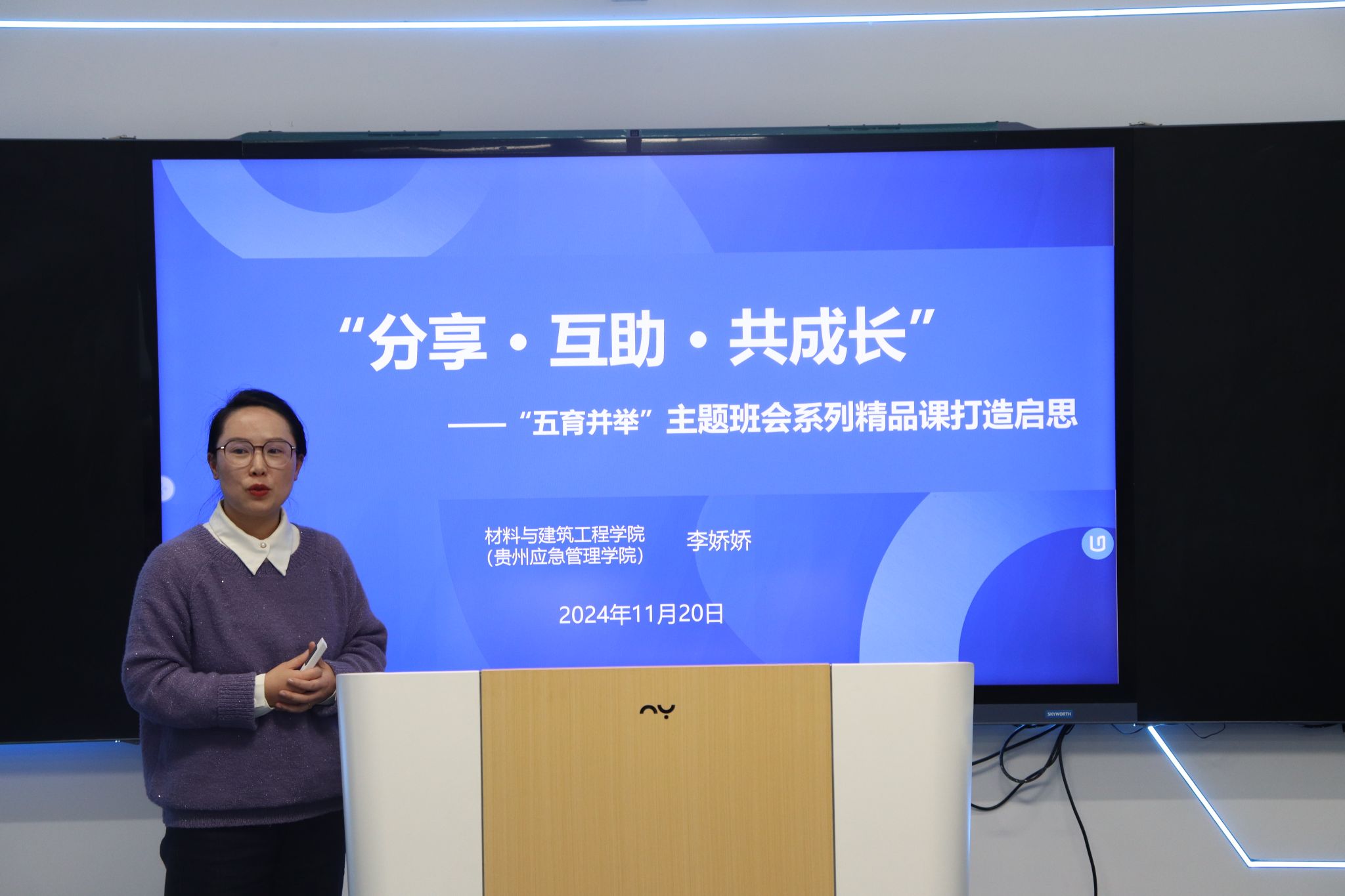 主题分享环节,蒋方毅、余建国、李娇娇结合自身参加由西南交通大学、华中师范大学主办的辅导员专题培训班的学习收获,就如何在“三全育人”、“五育并举”、“以生为本”背景下做好辅导员思想引领和员工日常管理教育作了主题发言。