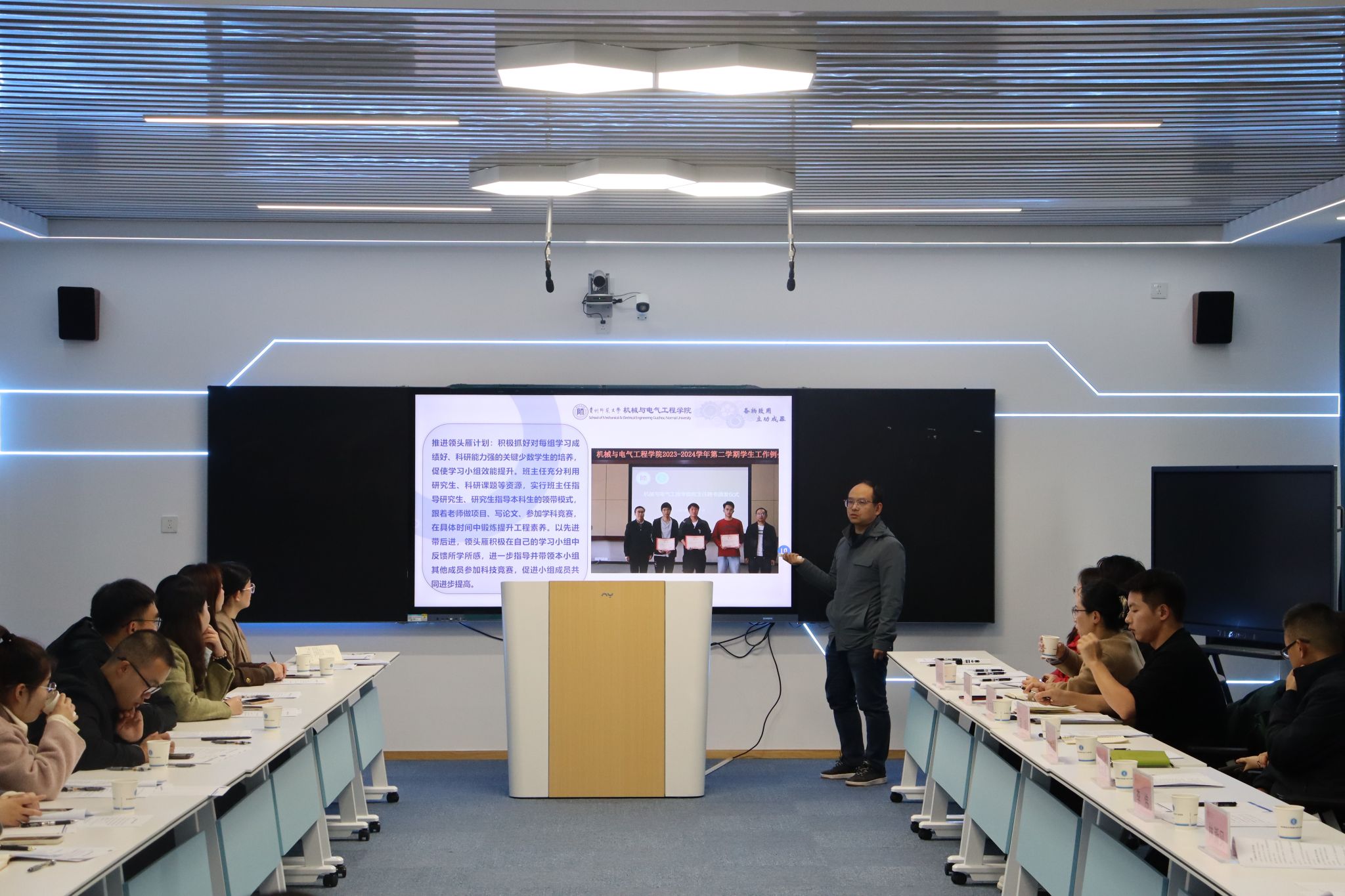 qm球盟会网站姚立国博士分享了班主任工作的经验,所带的2022级机械2班获评校级“十佳班集体”,他坚持以学科竞赛为抓手,有效发挥研究生“传、帮、带”朋辈帮扶作用,切实解决本科生在学业、竞赛、科研等方面的困难,切实推进班级学风建设。