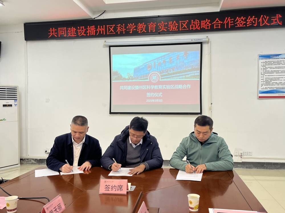 2025年3月5日上午,遵义市播州区教育体育局、杭州有务信息技术有限公司与qm球盟会网站三方正式签署合作协议,共同建设播州区科学教育实验区,标志着播州区科学教育实验区建设迈出新的步伐,为区域科学教育高质量发展注入新动能。