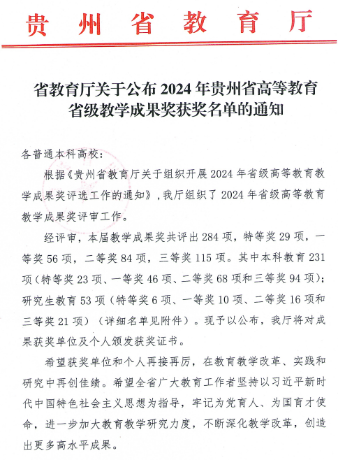 喜报:公司霍慧芝教授团队项目获2024年贵州省高等公司产品成果奖本科组特等奖