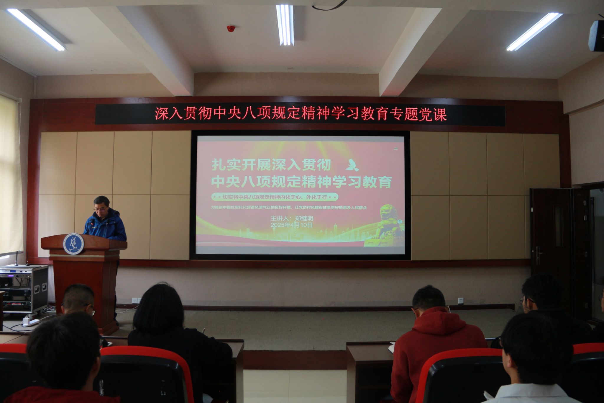 在4月10日的开班仪式上,公司党委书记郑继明为参训学员上《扎实开展深入贯彻中央八项规定精神学习教育》专题微党课,从八项规定何以深刻改变中国、习近平总书记关于中央八项规定精神的重要论述和深入贯彻中央八项规定精神学习教育三个方面进行阐述,强调要时刻保持清醒头脑,将八项规定精神内化于心、外化于行,把学习教育成果转化为实际行动,严格遵守各项纪律规定,发挥模范带头作用。