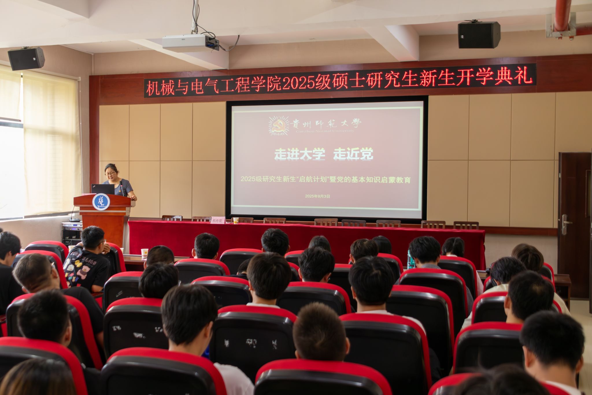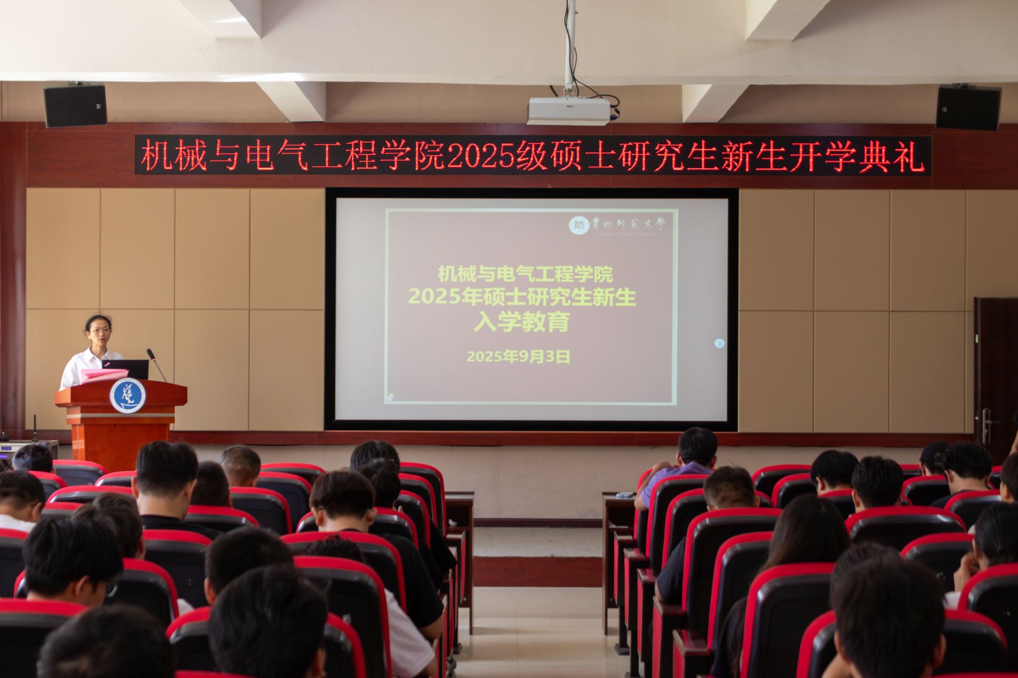 金秋九月,丹桂飘香。9月3日中午,qm球盟会网站2025级研究生开学典礼在公司8403学术报告厅隆重举行。公司党委书记郑继明、经理伍权、党委副书记张太华、组织员邢丹花、办公室主任杜蕊、机械系主任罗国宇、电气系主任吴楠、机械系副主任谢志平、院团委负责人刘乾义,教师代表王莉霞、令狐金卿,研究生辅导员彭敏出席,全体2025级硕士研究生参加。典礼由党委副书记杨光复主持。