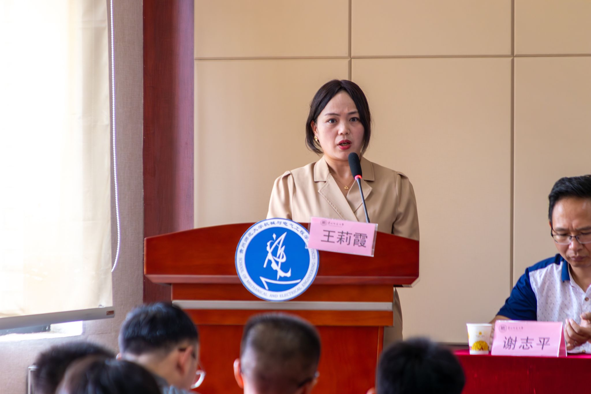 青年教师代表王莉霞分享了自己的科研经历与心得。她以“勤学与好问”寄语新生,强调学术道路无捷径,唯有脚踏实地、潜心钻研。同时也鼓励大家勇于发问,以问题驱动科研成长。