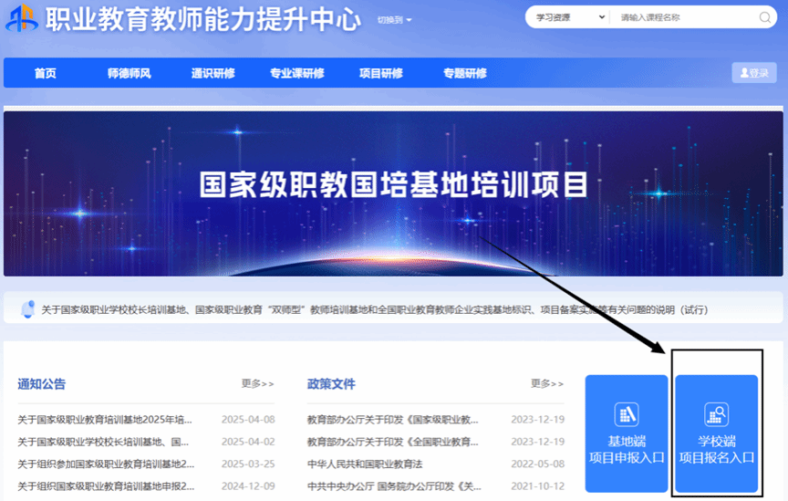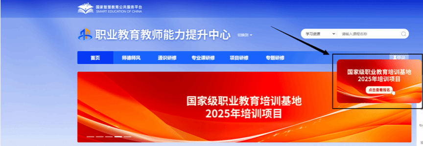 2. 点击飘窗:国家级职业教育培训基地2025年培训项目。