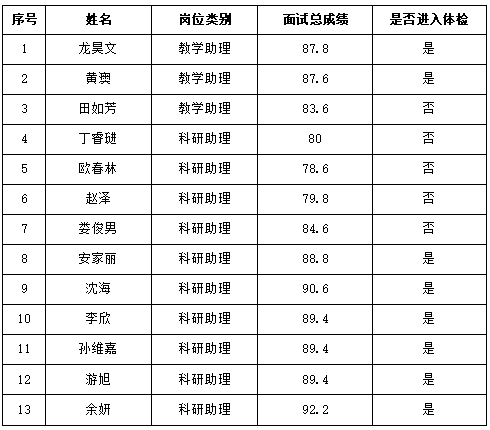 qm球盟会网站2025年招聘科研助理、教学助理面试成绩及进入体检名单公示