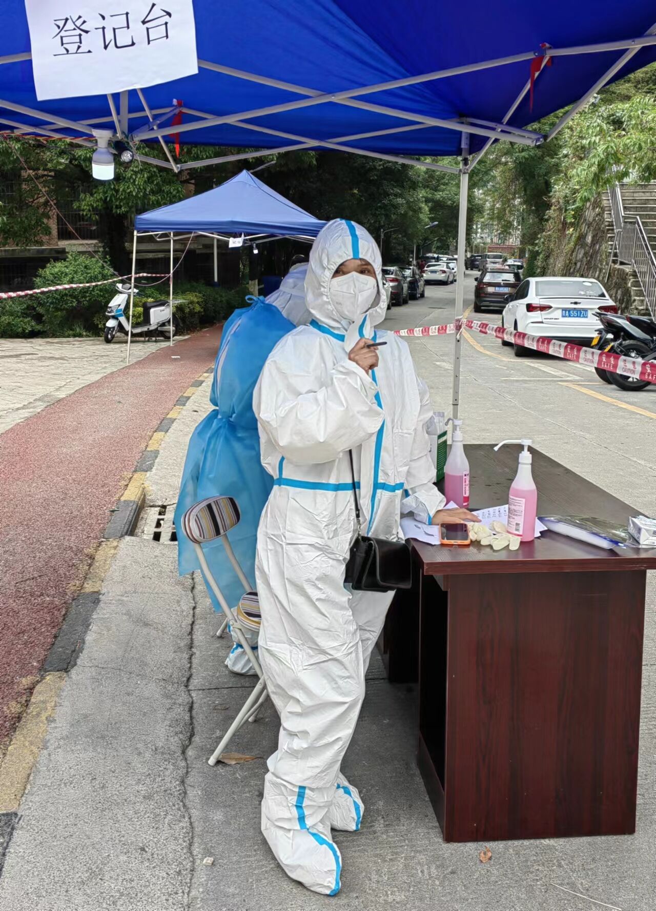公司今年十月就将退休的电气工程系党支部党员教师李崇华,也积极响应公司党委的号召,到观山湖区碧海花园社区报到,参与到这场看不见硝烟的战斗。作为志愿者,她认真登记核对居民信息,圆满完成每一次抗原试剂盒发放,精心负责核酸检测工作中的扫码、消毒和封闭采集管等工作,用认真负责的态度赢得了社区工作人员和居民的一致好评。她说:“此次志愿服务,我近距离了解和参与了很多具体的环节。感觉很开心,也很有意义。”