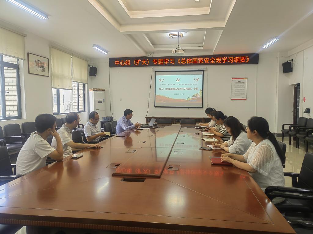 7月1日,机械与电气工程公司党委理论学习中心组(扩大)专题学习研讨《总体国家安全观学习纲要》(以下简称《纲要》),深刻领会总体国家安全观的重大意义、核心要义、精神实质、实践要求。公司党委书记郑继明主持学习研讨会,公司党委委员、全体师生党支部书记参加学习和集体研讨。