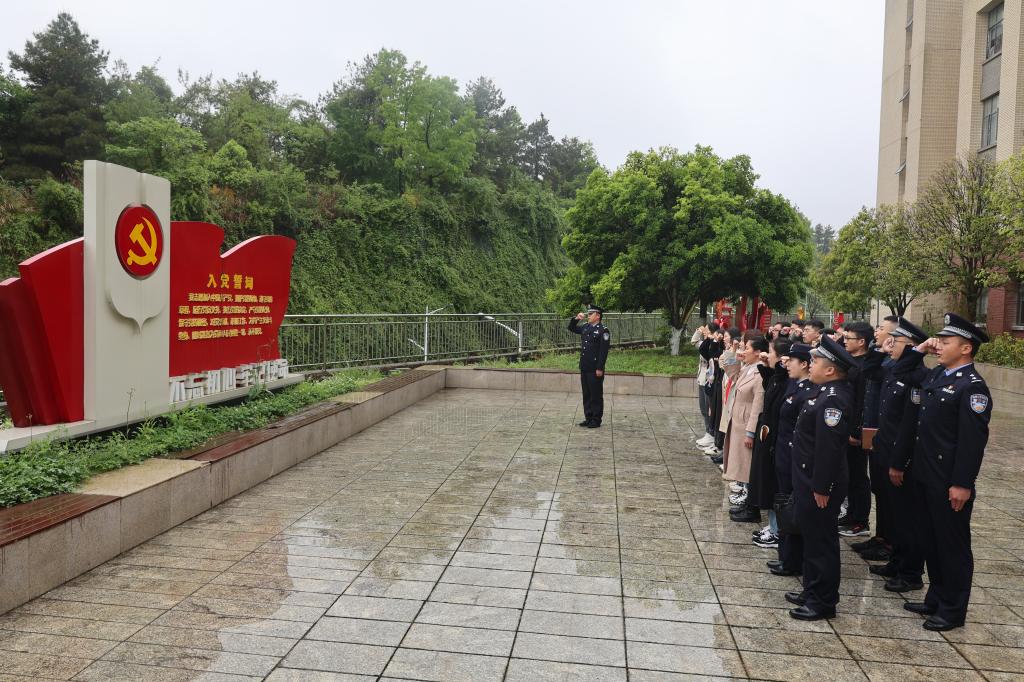 随后,共建支部全体党员共同前往地环公司参观“中国精神”红色文化长廊,解说员以党在革命、建设、改革各时期领导下的伟大精神为依托,生动讲述了中国共产党走过的峥嵘岁月,着重凸显中国共产党人的精神谱系。参观学习结束时,由贵州省出入境边防检查总站执勤一队党支部副书记张杰同志的领誓,全体党员面向党旗重温入党誓词,彰显了对党忠诚、坚定理想信念、时刻保持党员本色的决心。