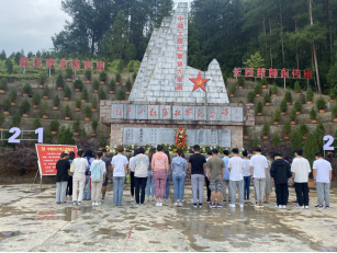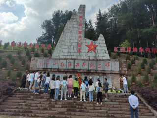 签约仪式结束后,研究生党支部一行来到困牛山战斗遗址。公司经理伍权为支部党员介绍了红军从甘溪战役到困牛山战斗的历史,公司党委副书记(驻村第一书记)杨光复重点讲述了困牛山战斗中百余红军英勇跳崖的故事。全体人员参观了困牛山红军壮举纪念碑和红军战士跳崖遗址,学习到了少年红军参加革命的故事,体会到了百壮士以身换生机的壮举。带着对烈士的敬仰,在纪念碑面前,支部全体党员默哀三分钟,缅怀所有在斗争中奉献出宝贵生命的革命先烈们。