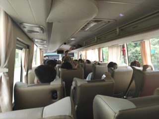 大巴车上,支部退伍复学军人郭明发、邓松松两名同志为全体人员介绍了困牛山战斗的背景、战斗过程和意义。