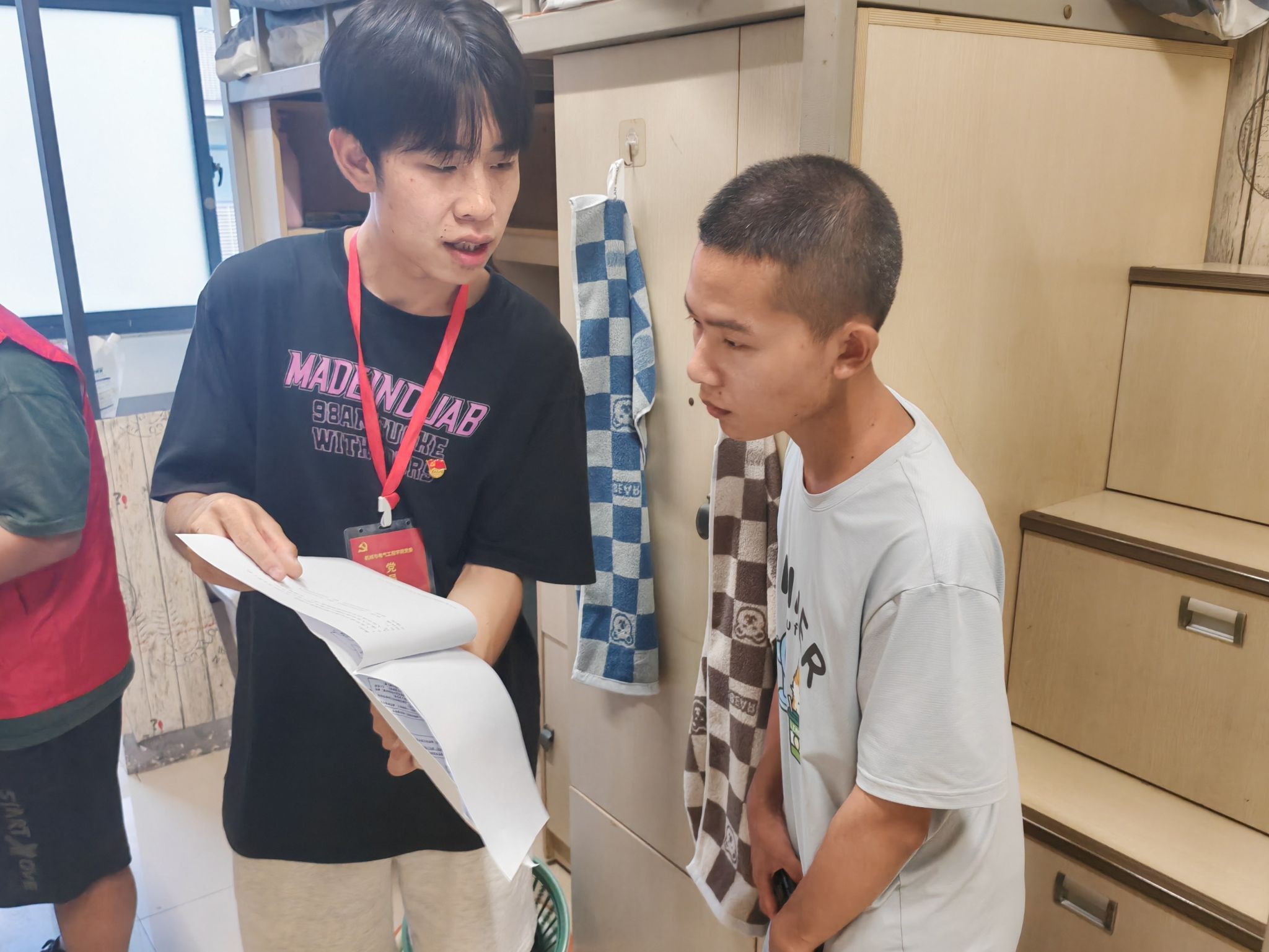 走寝过程中,“党员先锋岗”的同学还结合自身的成长经历,为新生的大学规划提供了诚恳的建议,分享了生活和学习经验,帮助新生了解公司图书资源,引导新生掌握有效的学习方法,养成良好的学习习惯。此外,还专门强调提高安全防范意识,特别是防范网络诈骗的重要性,提醒他们提高警惕,守护好人身和财产安全。