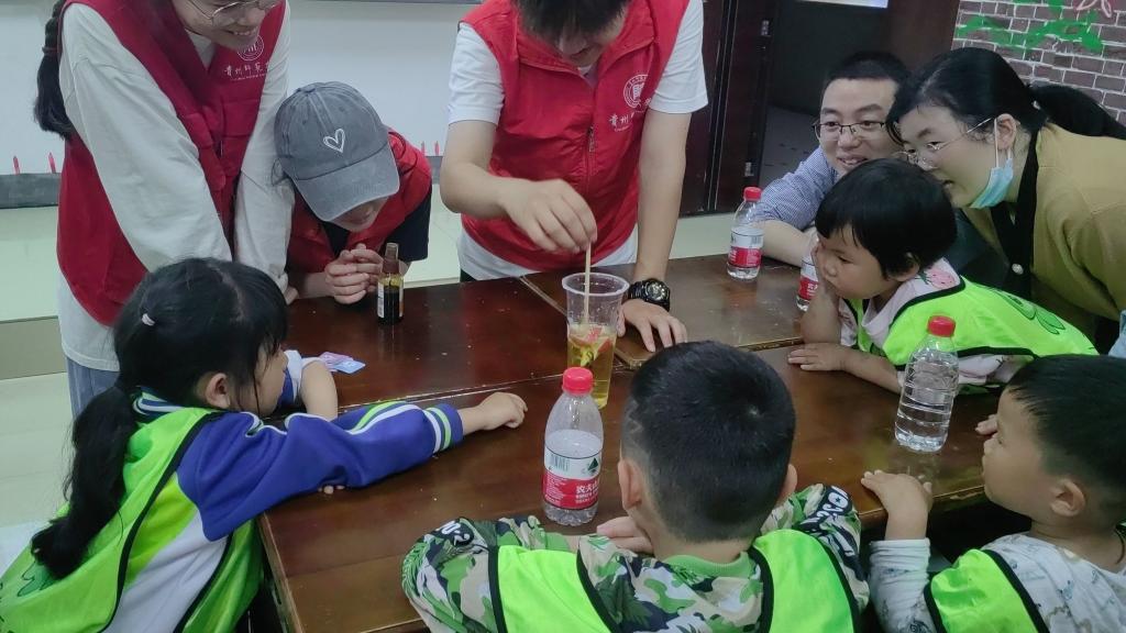 为确保活动有序开展,公司青分会志愿者分为了现场布置组、维序组、引导组、授课组、摄像组,每组成员负责对应数量的小朋友,分工协作、统一行动为小朋友和家长们带去满意、快乐、充实、休闲的香樟小课堂,并让家长们放心的把孩子交给我们志愿者去带领学习。志愿者们积极参与、和蔼亲切、认真对待、面怀微笑地为小朋友们讲解知识,并现场演示,让小朋友们亲身体验了五个实验项目以增加他们对于科学的兴趣,最后以问答的形式让小朋友们参与活动,增进了小朋友们的思考能力。