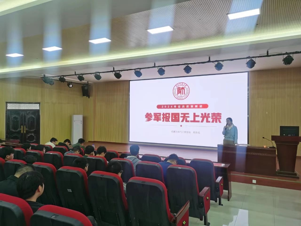 为鼓励和引导公司应届毕业生积极响应国家号召,投身军营、献身国防,4月25日,公司党委副书记杨光复、组织员、征兵工作联络员邢丹花赴贵州装备制造职业公司,为与公司联合培养的电气工程及其自动化专业的员工作入伍宣讲动员。