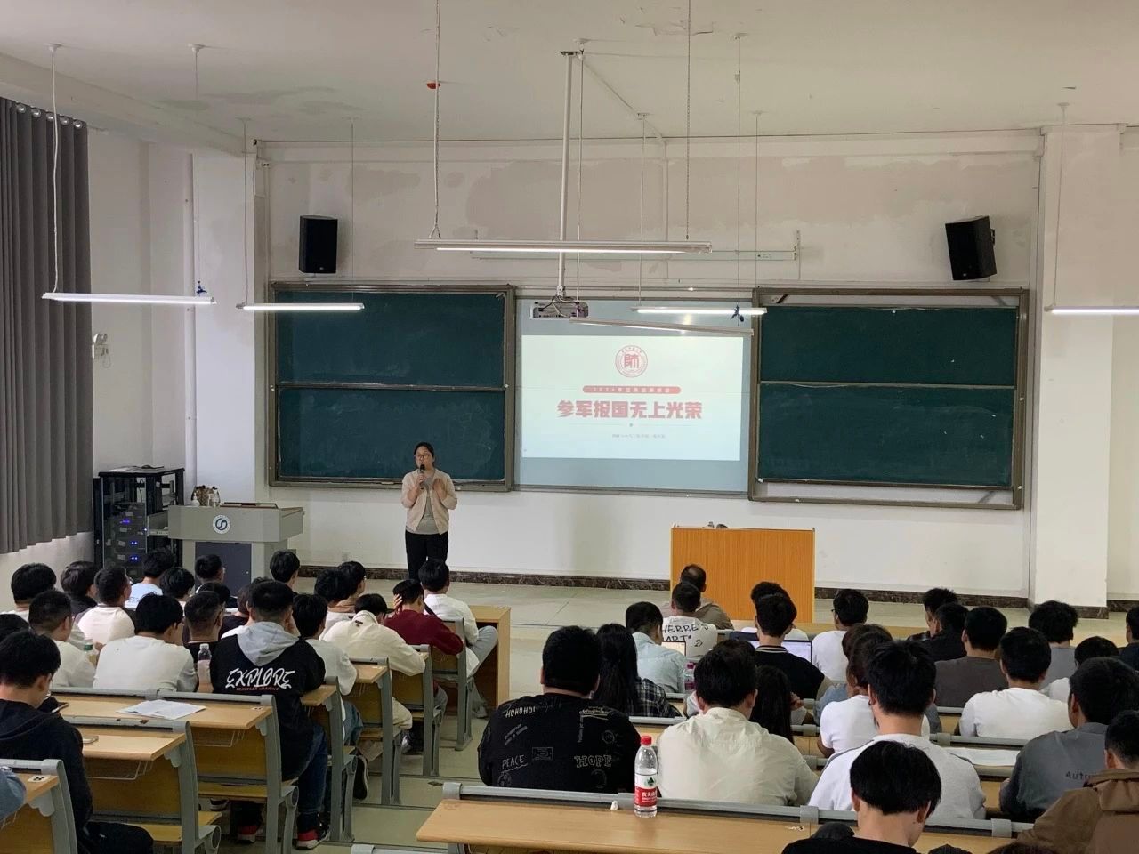 为深入贯彻习近平强军思想,扎实做好公司2024年秋季征兵工作,确保适龄青年全面了解征兵信息,掌握征兵政策,营造浓厚入伍氛围,激发应届毕业生携笔从戎、报效国家的热情。4月18日,公司党委副书记杨光复、组织员、征兵工作联络员邢丹花、2024届毕业班辅导员曹允刚一行赴贵州交通职业技术公司,为与公司联合培养的机械设计制造及其自动化专业的专升本员工作入伍宣讲动员。
