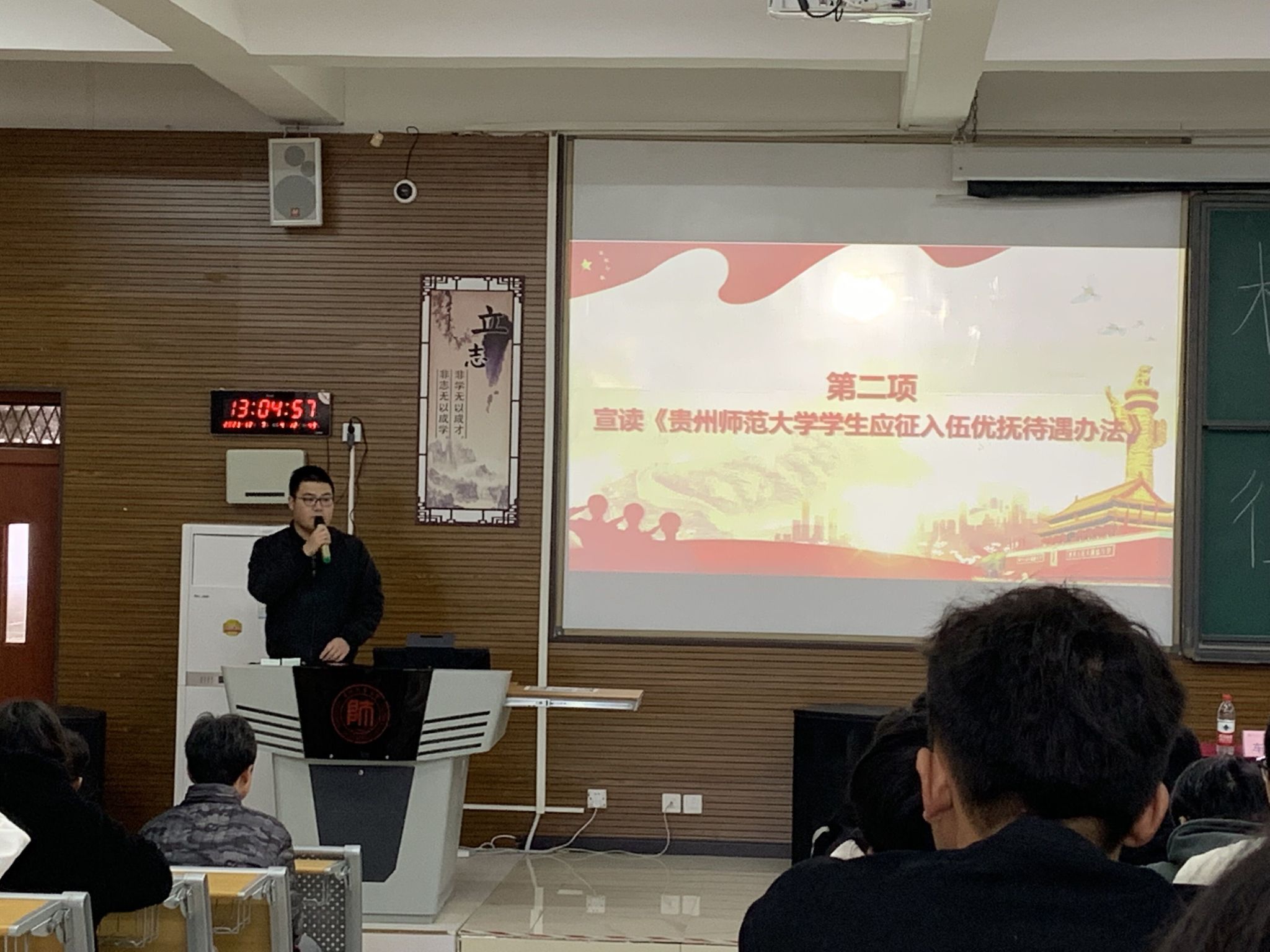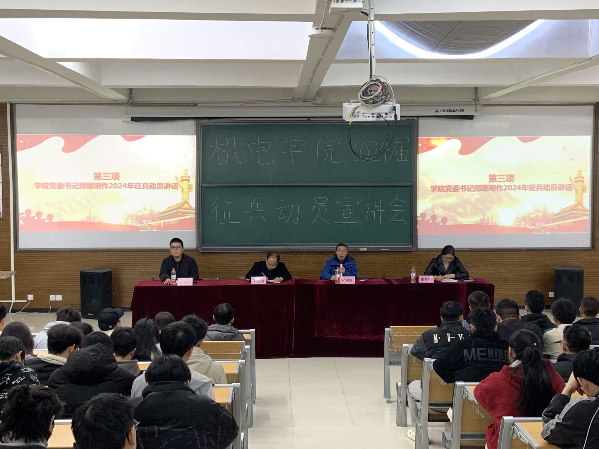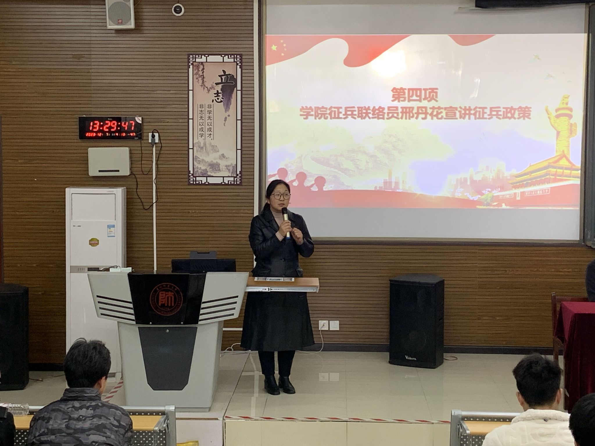 12月7日,公司在东校区公教6201教室召开2024年征兵工作动员大会。公司党委书记郑继明、副书记杨光复、征兵联络员邢丹花、教学管理科负责人车晓骏、2024届毕业班辅导员曹允刚出席,2024届适龄毕业生和征兵义务宣传员共200余人参加会议。