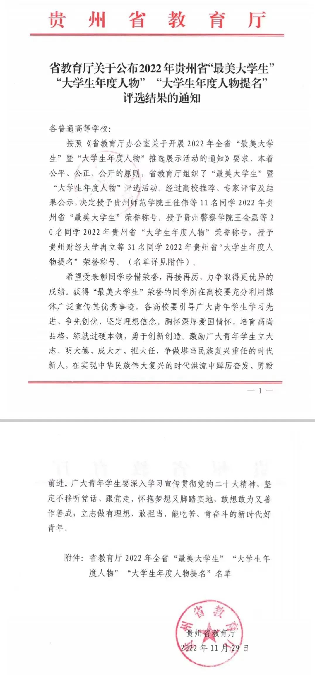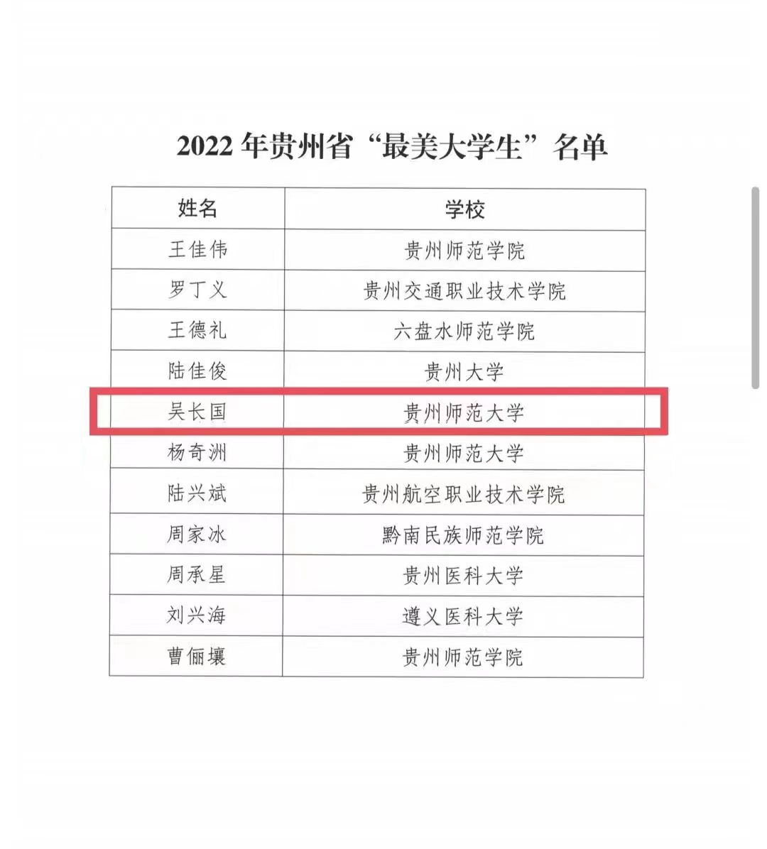 贵州省2022年“最美老员工”暨“老员工年度人物”推选展示活动结果出炉啦!我院学子吴长国荣获2022年全省“最美老员工”称号。