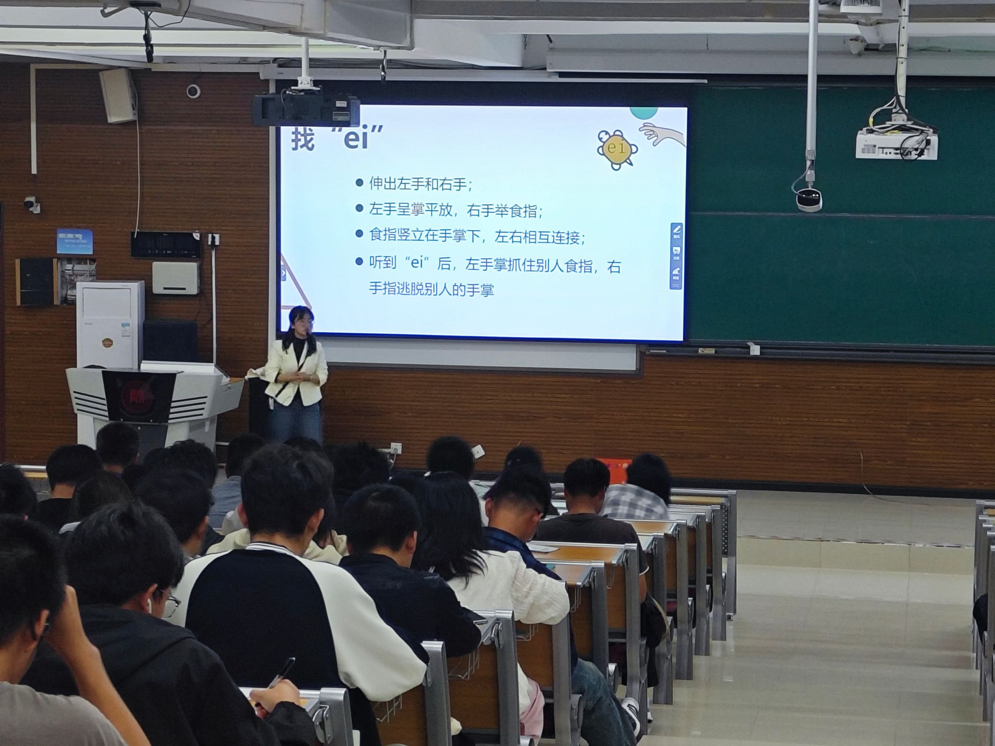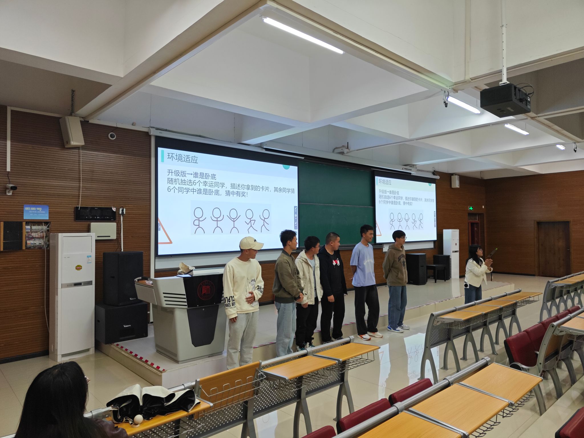 讲座以“猜猜他是谁”小游戏作为导入,从老员工活特点、新生适应策略、校内外心理健康服务资源等方面,引导新生掌握如何在大学中进行自我定位的技巧,鼓励他们做更好的自己。讲座过程中,通过“谁是卧底”“找ei”等小游戏,帮助新生更加深入地了解老员工活,正确看待和合理处理人际关系问题,减少人际冲突。讲座通过理论讲解、案例分析和互动交流帮助新生提升自我认知,增强自信心,培养阳光心态,成就更好的自己。