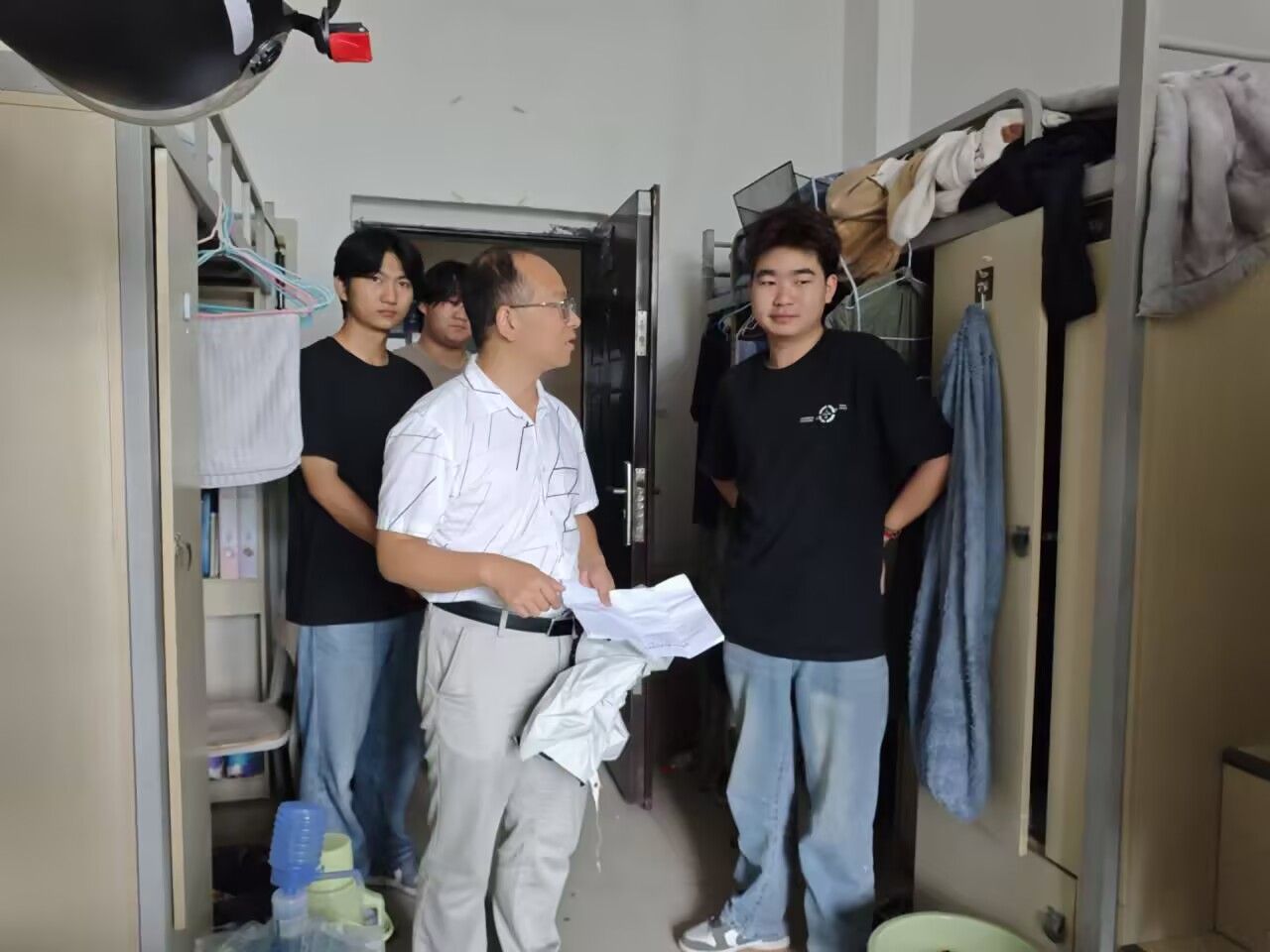 走访过程中,老师们详细询问大家的返校行程、身体状况及假期生活,仔细查看宿舍卫生环境与生活设施情况。针对同学们提出的学业规划、生活适应等问题,老师们耐心解答并给出建议,鼓励大家以饱满的精神状态投入到新学期的学习生活到中去。