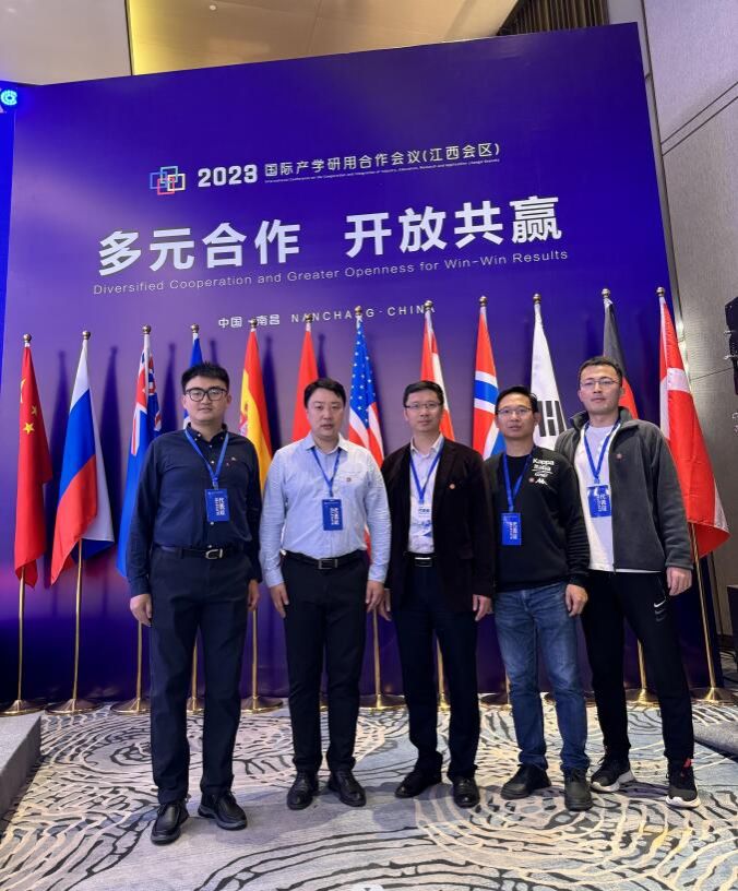 10月26日下午,qm球盟会网站经理伍权、国际交流与合作处副处长钱亦斐、qm球盟会网站教师谢志平、姚立国、王思鹏一行五人赴南昌参加2023年国际产学研用合作会议(江西会区)开幕式。