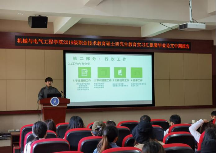 3月18日上午,公司2019级职业技术教育硕士研究生在机电楼8403学术报告厅进行了教育实习及毕业论文中期报告。职业技术教育硕士生导师吕长飞、吴舰、王春梅、游明琳、王珩出席, 2020级职业技术教育硕士研究生观摩学习。