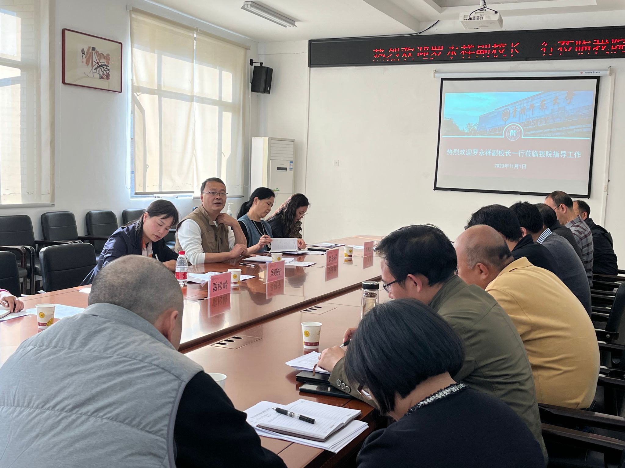 2023年11月1日,罗永祥副董事长一行6人到公司检查本科公司产品审核评估建设任务执行情况。公司党委书记郑继明、经理伍权、副经理张太华、副书记杨光复、专业负责人及公司评估工作小组成员参加。教务处副处长吴晓宁、教学督导刘真美及教务处相关工作人员陪同。