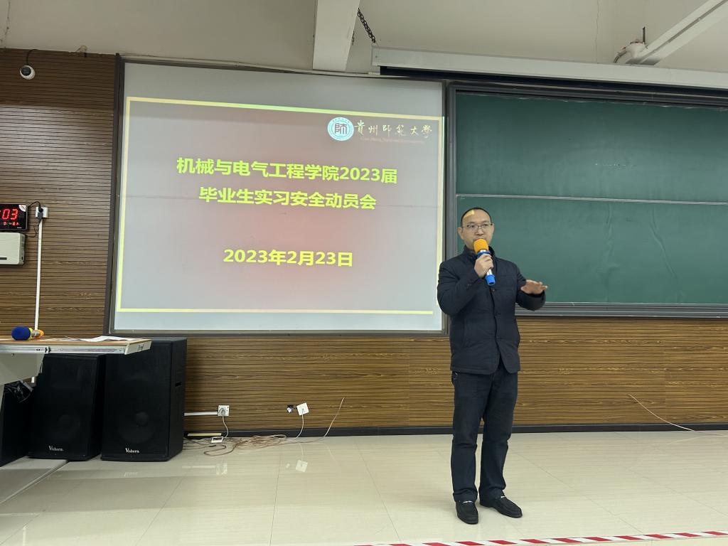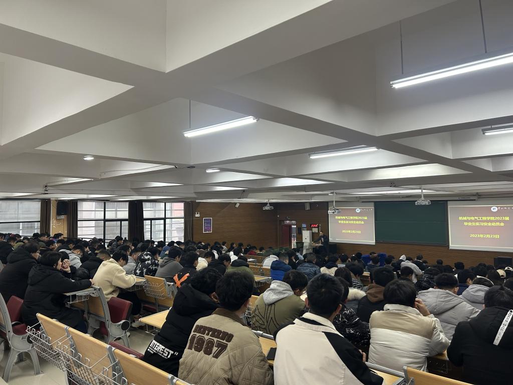为扎实做好2023届毕业生实习工作,2月23日,公司在GJ6202教室召开2023届毕业生实习动员暨安全教育大会,公司副经理张太华,各系教师代表出席会议,2023届毕业生300余人参加,会议由毕业班辅导员许珊主持。