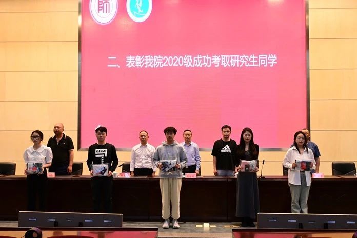 大会在庄严的国歌声中拉开序幕。杨光复宣读了2024年公司成功考取研究生的同学名单,随后由在主席台上就座的各位领导为2020级成功考研的同学颁发了奖品。