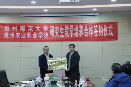 最后,公司经理伍权与贵州农业职业公司机电与城建系主任杨光龙共同签署研究生教育实习基地合作协议并揭牌。