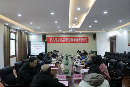 12月1日上午,公司党委书记郑继明、经理伍权、公司党委副书记杨光复及公司教师一行七人赴贵州农业职业公司清镇校区就研究生教育联合培养相关事宜进行了交流参观。公司与贵州农业职业公司签订研究生教学培养合作协议,贵州农业职业公司副经理韩昌权、副经理黄华、组织人事部部长肖连军、教务处处长乔艳龙、机电与城建系党总支书记陈述强、主任杨光龙及相关教师参加了签约仪式。