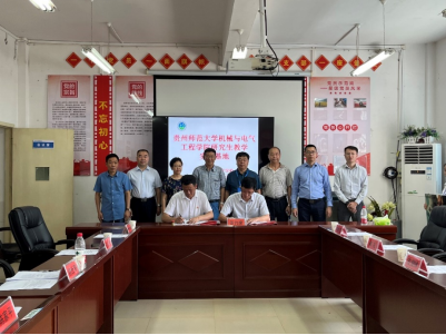 公司经理伍权与仁怀市特殊教育公司董事长罗伟共同签署特-职融合教育合作协议,并共同为研究生教育实习基地揭牌。