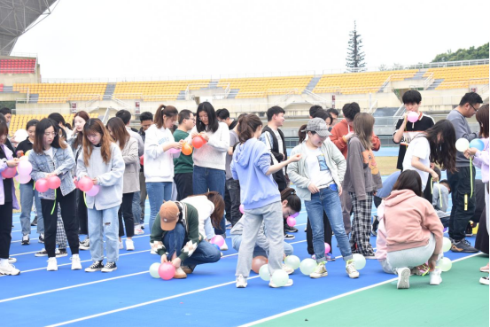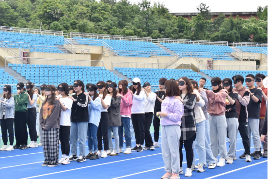 分别由16人组成的六条贪吃蛇准备出发啦!在寻找小球的过程中不可以说话,只可以靠大家的肢体语言来判断小球在哪里,有效地考验了同学们之间的团队合作精神和默契程度。