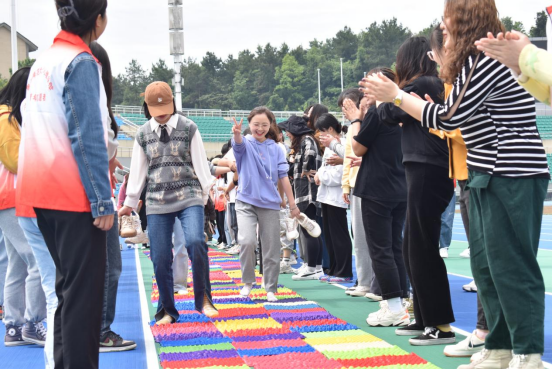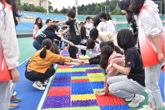 得分最少的三支队伍要接受今天的特别奖励——穿越彩虹指压板,同学们都想尽办法让这三支队伍深刻体验“舒服”的指压板,活动在大家的欢声笑语中落下帷幕。