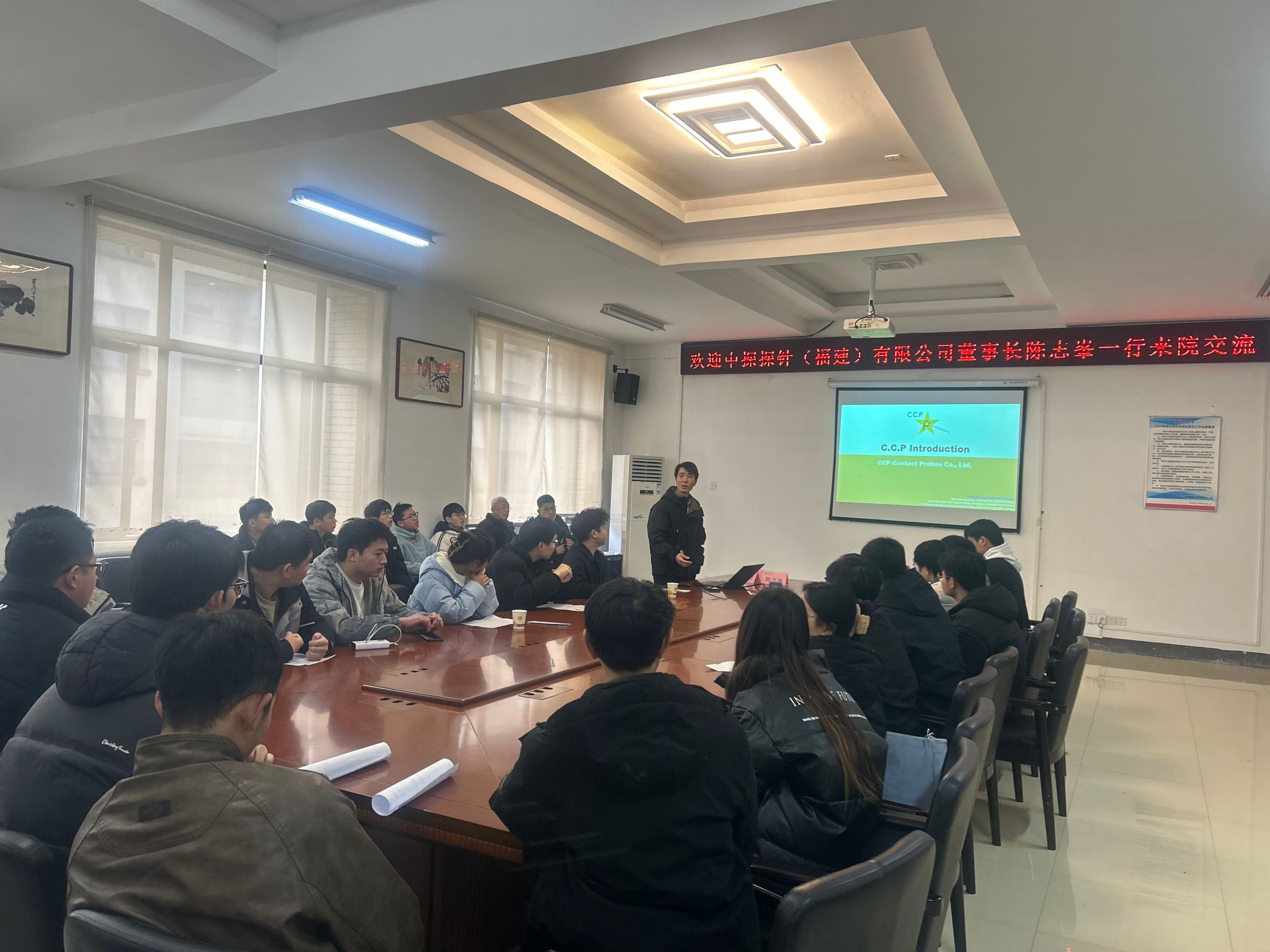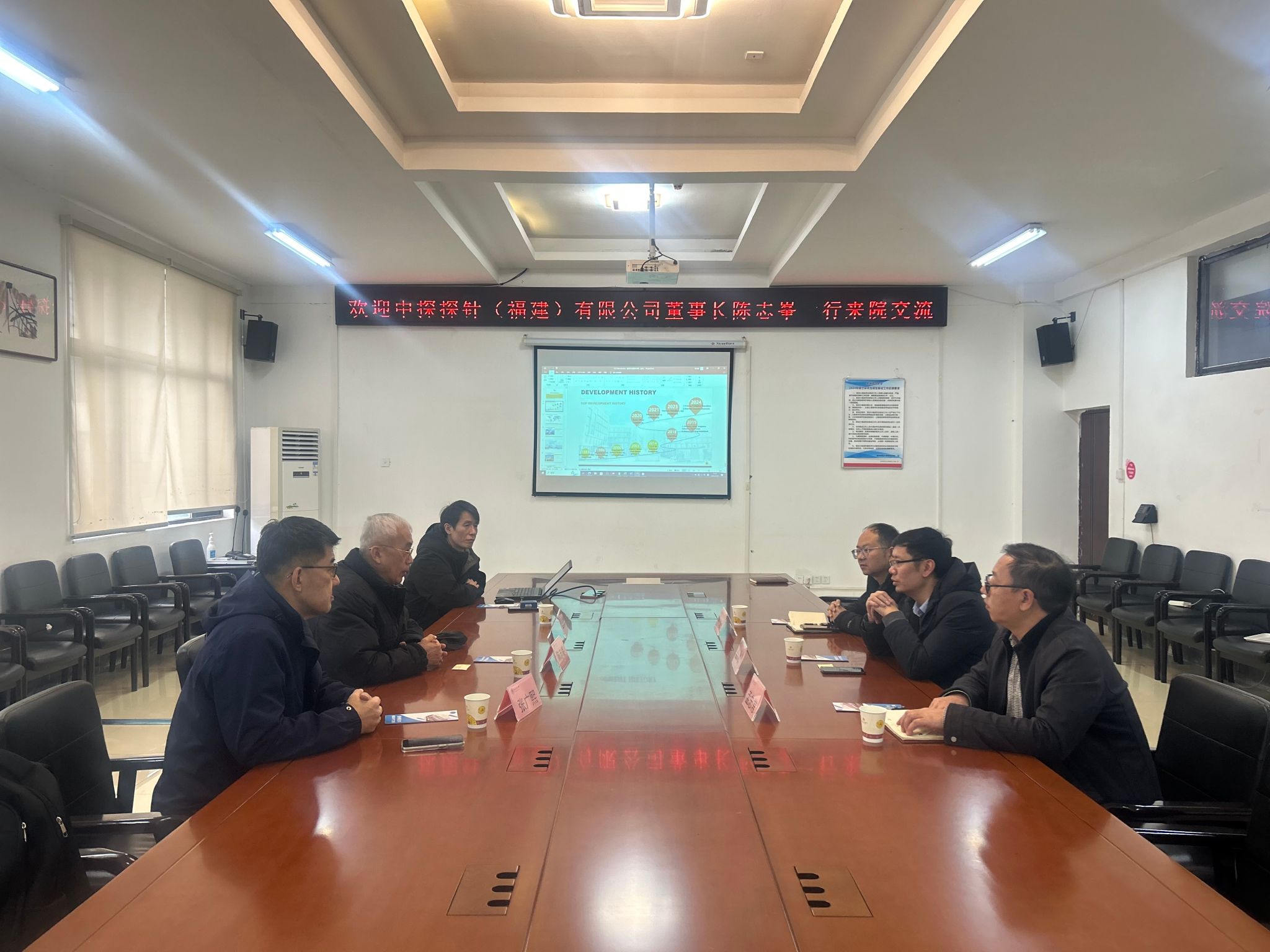 3月18日,中探探针(福建)有限公司董事长陈志峯一行到访qm球盟会网站,就人才选聘等事宜展开深入洽谈,并面向工科公司2025届本科和硕士毕业生举办了招聘宣讲会。公司党委书记郑继明、经理伍权、党委副书记杨光复,材料与建筑工程公司党委副书记孟忠常出席座谈会。