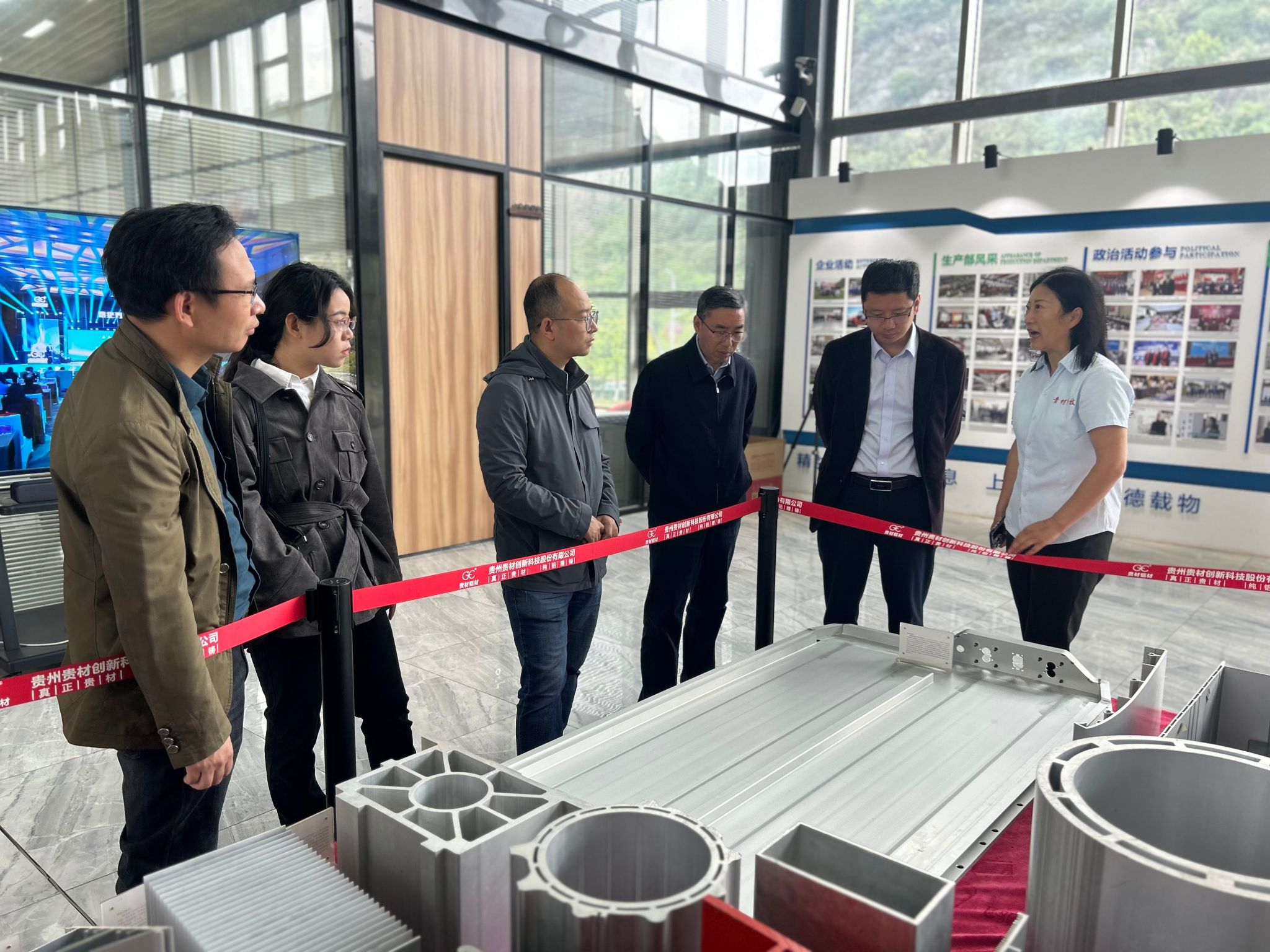 在贵州贵材创新科技(集团)股份有限公司总经理费熙的陪同下,公司领导和老师们参观了企业的生产车间,详细了解了企业的生产流程、技术装备、产品研发等情况,并就企业的人才需求、技术创新等方面进行了深入交流。