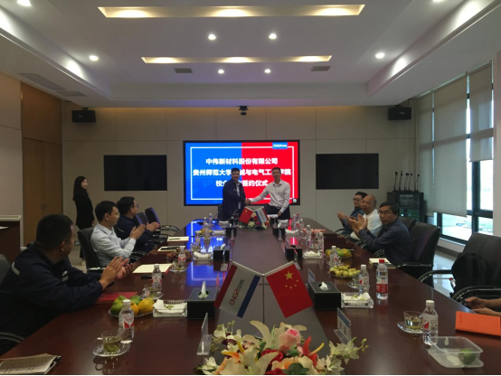会议围绕开展校企合作、共建实习实训基地、硕士研究生联合培养、技术开发等方面进行了深入的探讨和交流,并签订校企合作协议。会上,经理伍权表示合作将充分发挥校企双方优势,在下一步的工作中,建立常态沟通机制,在智能制造相关科研和人才培养等方面将校企合作落地。中伟新材料股份有限公司常务副总经理张朝华介绍了公司基本情况与需求,并希望企业和公司通过此次合作实现共赢。