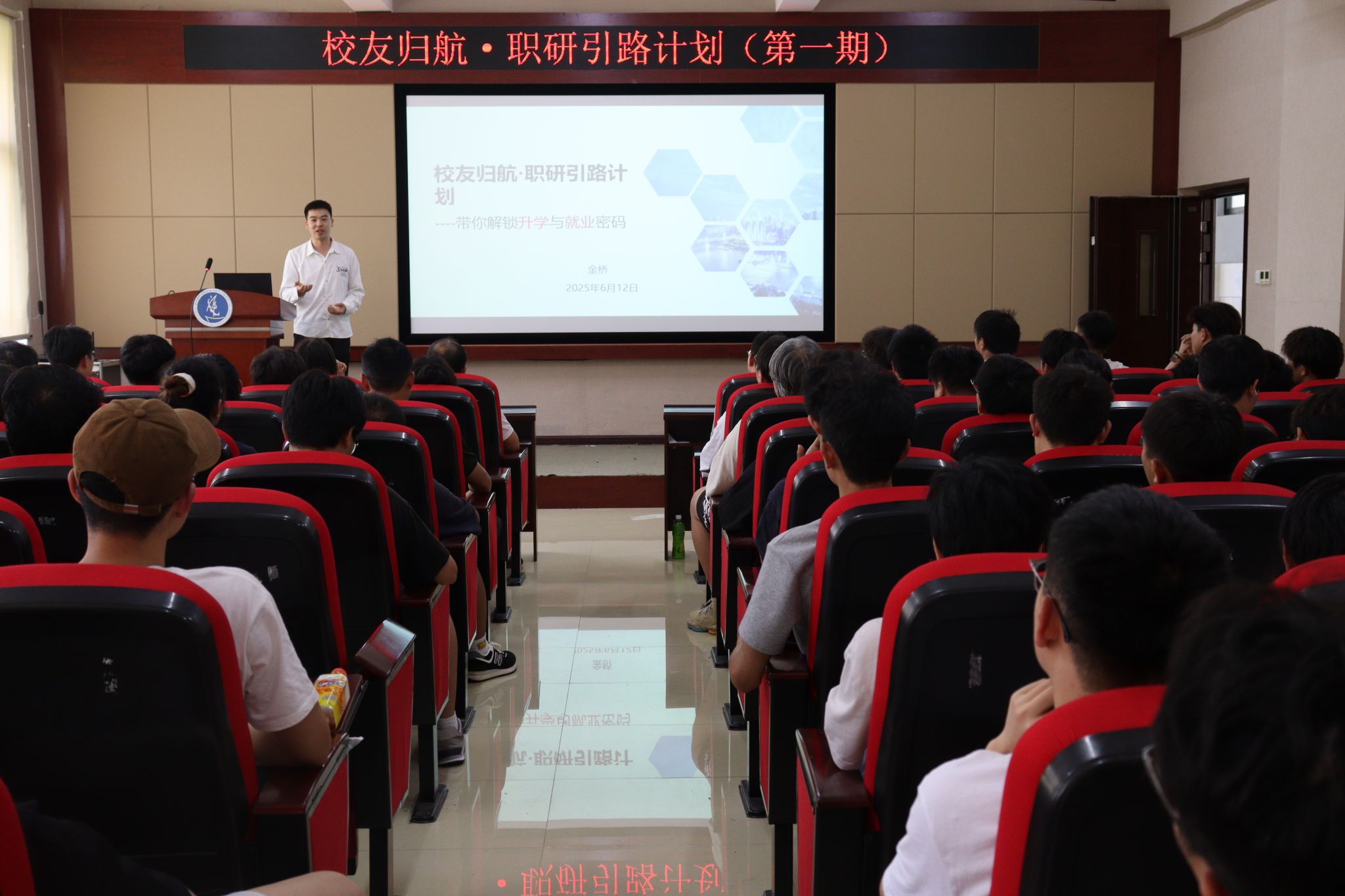 为更好地帮助2022级电气工程及其自动化专业员工明晰考研方向、坚定备考信心,2025年6月12日,公司在8403报告厅成功举办了“员工归航·职研引路”计划第一期主题讲座。本次活动邀请公司2022届电气工程及其自动化专业的员工、贵州大学2025届硕士研究生、中国南方电网新入职员工金桥担任主讲,公司党委副书记杨光复出席,会议由辅导员廖文群主持。